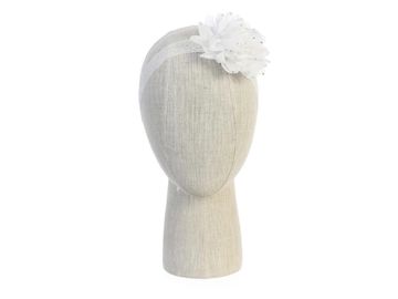 Girls White Lace Headband Stretch Satin Flower